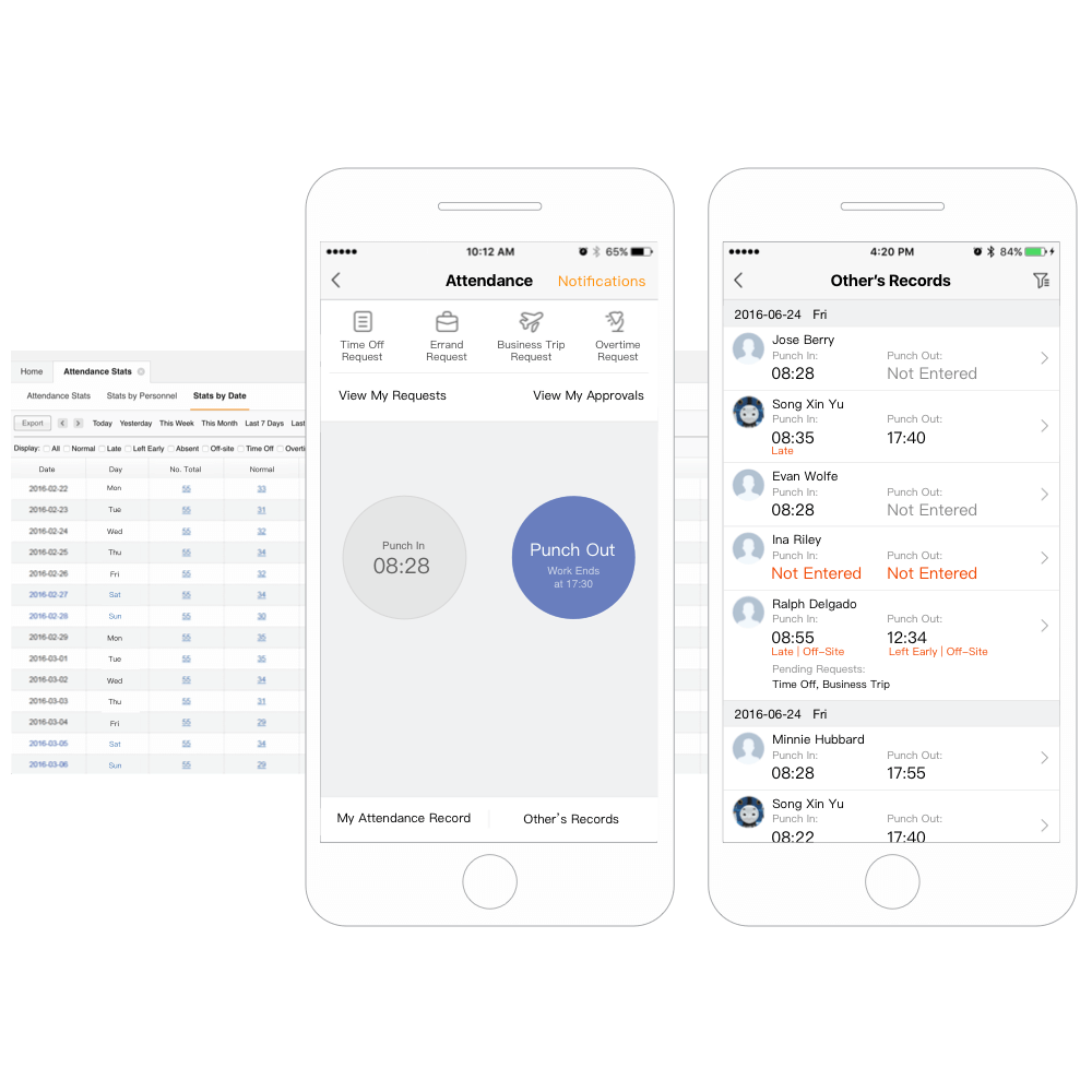 Employees can punch in and out of work right form their mobile device. Even when they are on-location at a worksite or on the road you can ensure that your employees are starting and ending work at the right times.