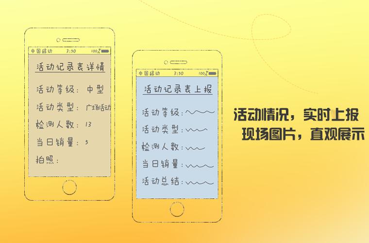 医药行业某些药品的促销活动,老板无暇亲力亲为,业务员就可以在现场用手机上报活动信息,更有现场图片上传,简单易操作。老板在后台可随时查询活动记录,上传的图片更是将活动现场完美呈现在了手机上,给老板身临其境的真实感。