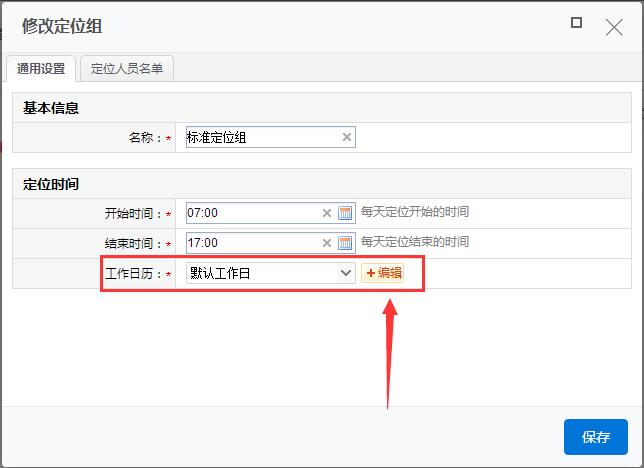 2、看下当前定位组使用的是哪个工作日历,然后点击编辑