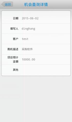 方式二:在客户端上点击【商机查询】按钮,进入商机查询列表,选择一条记录,直接点击该记录即可查看详情。