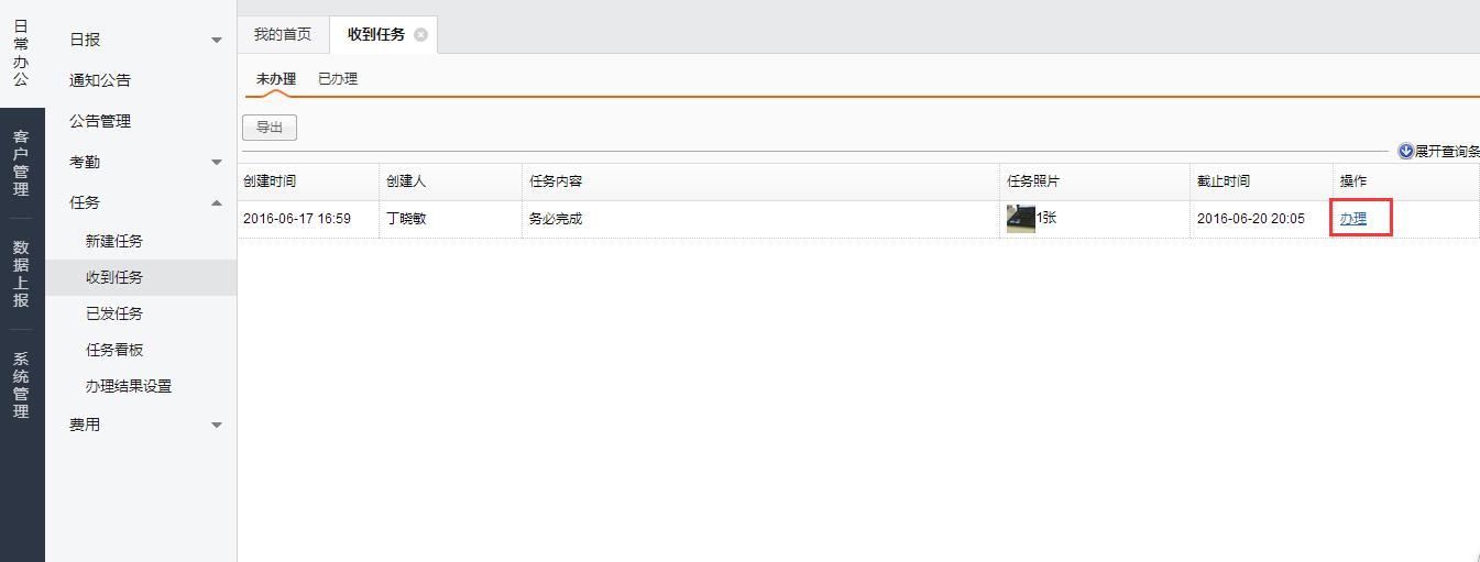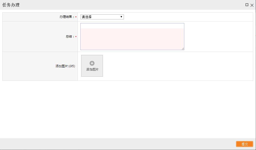 若任务已经完成,可以点击【办理】按钮,填写处理结果后提交