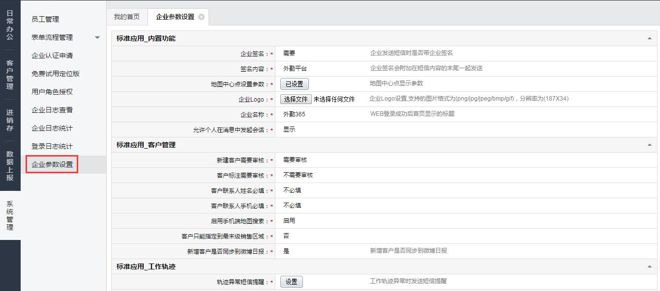 3.通过【企业参数设置】,可以设置企业的相关参数。