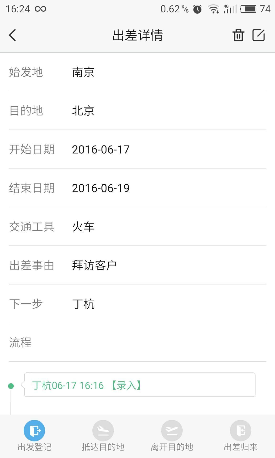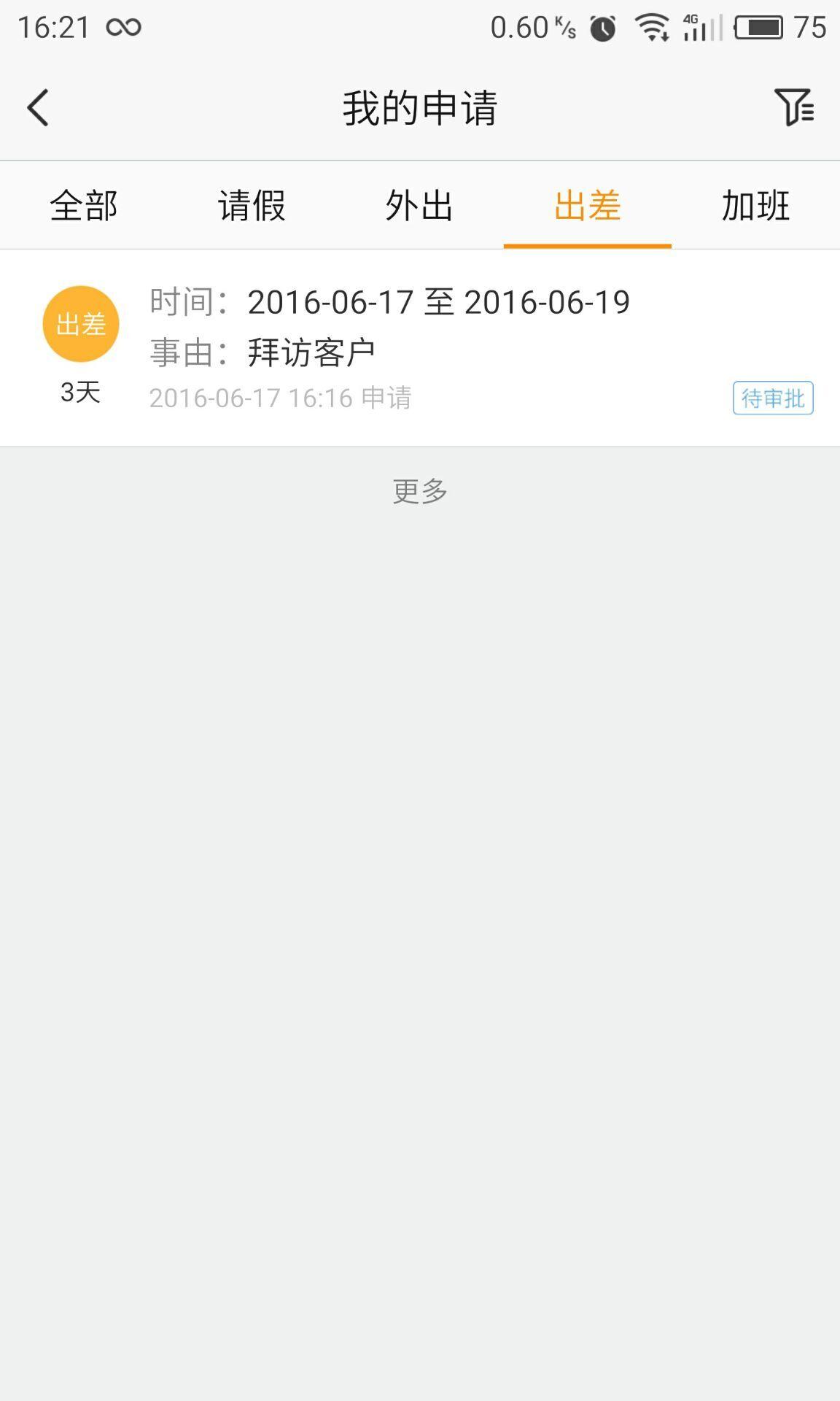 员工在手机端可查询出差申请的详细和审批状态,审批通过以前可以删除、修改出差申请。