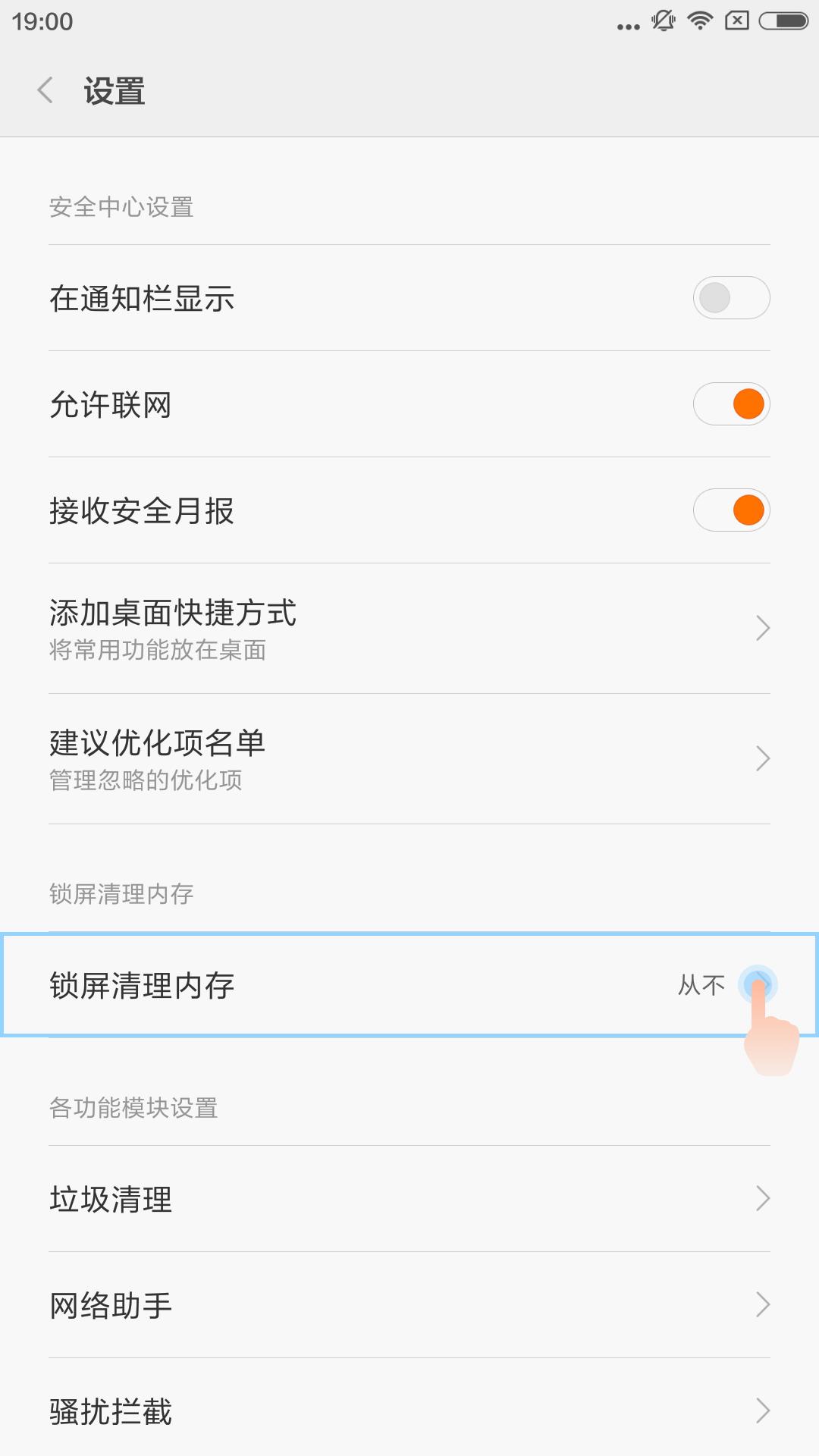 2、点击右上角齿轮图标,进去将锁屏清理内存选择‘从不’;