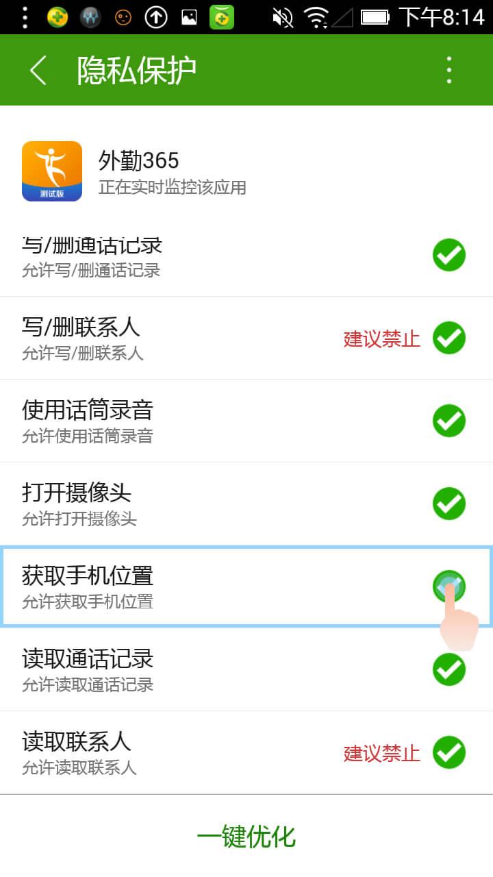 2.点击隐私保护——应用权限管理——找到外勤365,允许定位、允许打开网络