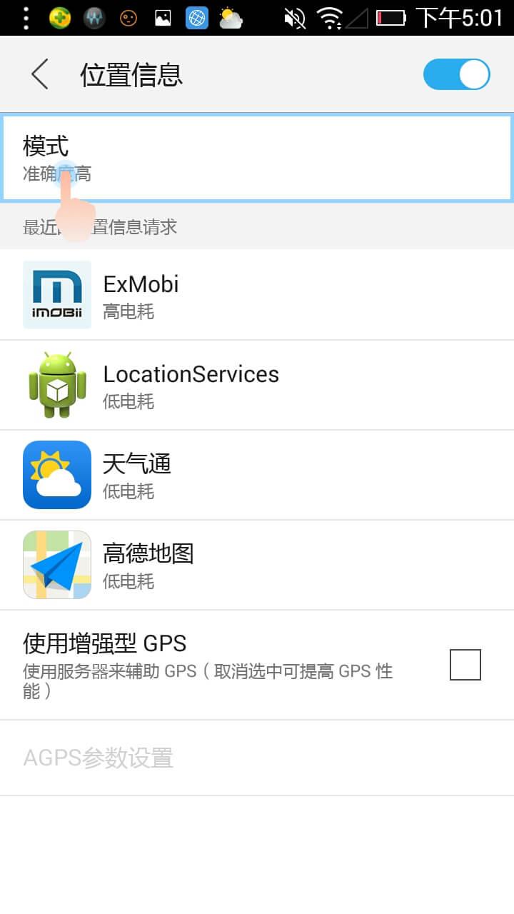 3.点击手机设置——全部设置——位置信息——定位模式选择准确度高