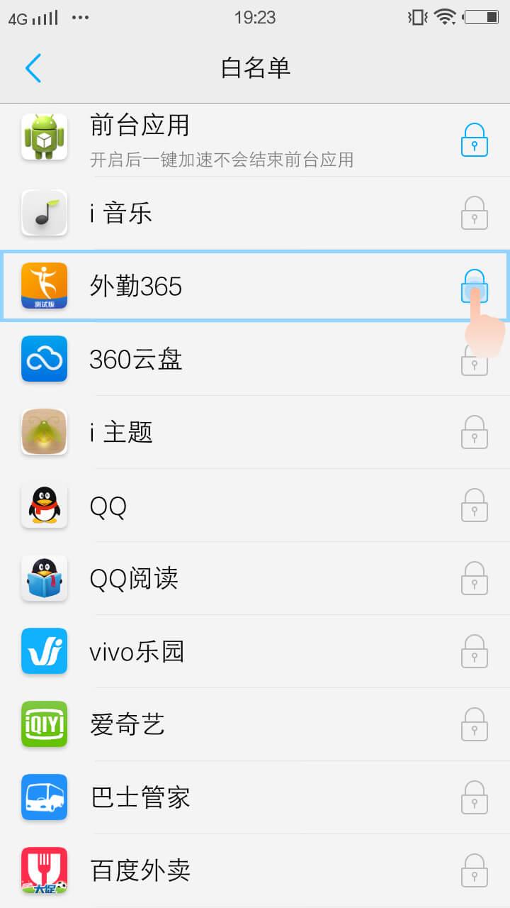 1.选择【手机清理】---右上角【设置】---选择【加速白名单】---找到【外勤365】打上勾