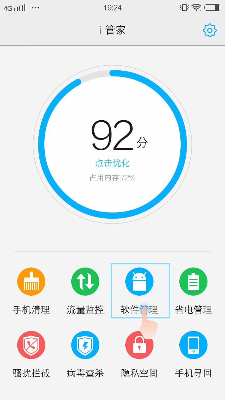 4.选择【软件管理】---选择【省电管理】---【正常模式或极速模式】--二选一