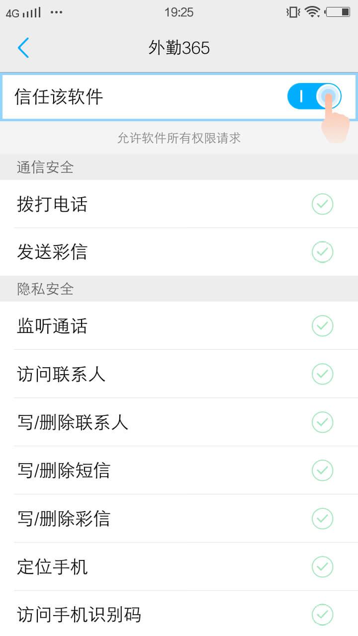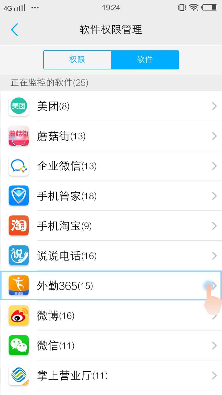 2.选择【软件管理】---选择【软件权限管理】---找到【外勤365】---设为【信任该软件】