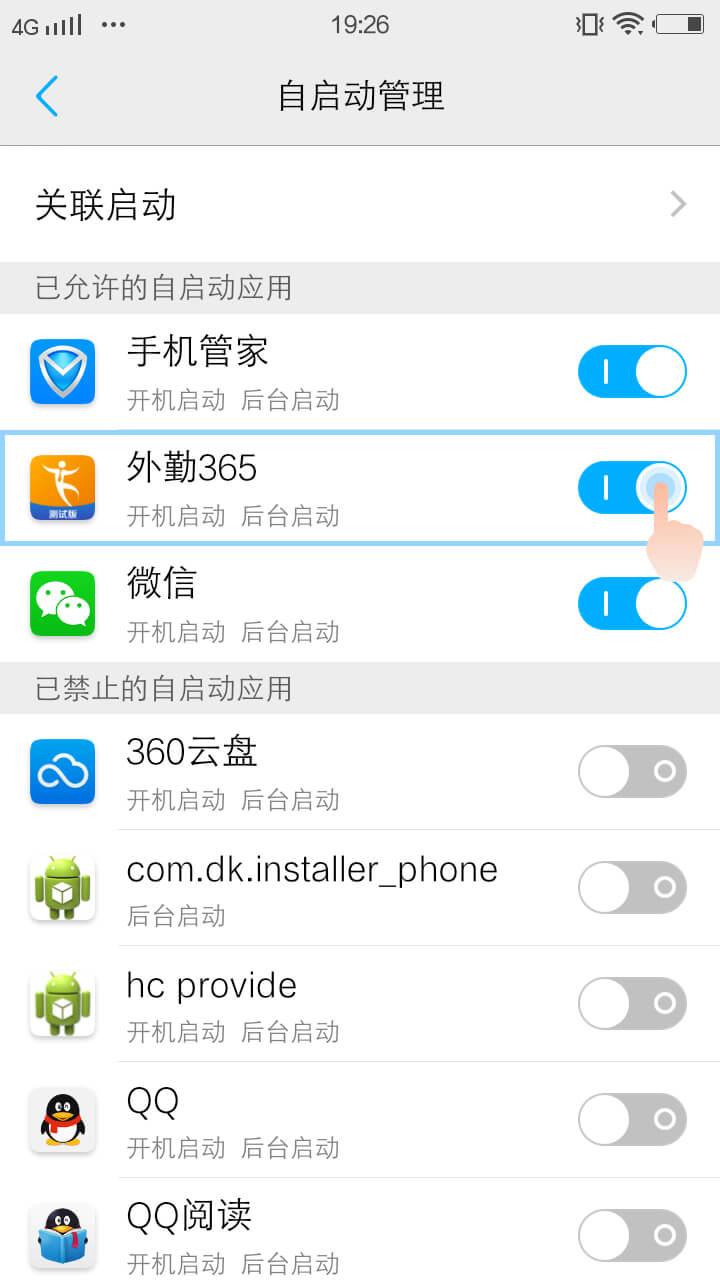 3.选择【软件管理】---选择【自启动管理】---【外勤365】---设为自启动
