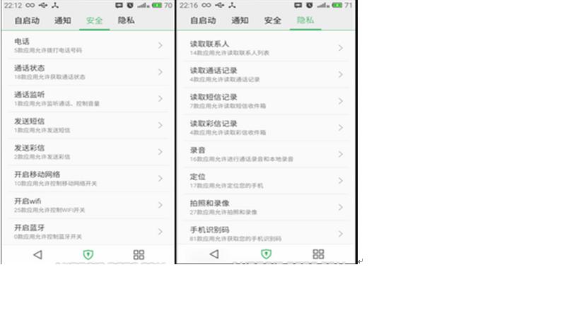 2、 进入安全中心—>权限管理—>隐私 定位和拍照打开允许外勤365