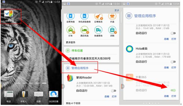 1.三星自启动设置,打开