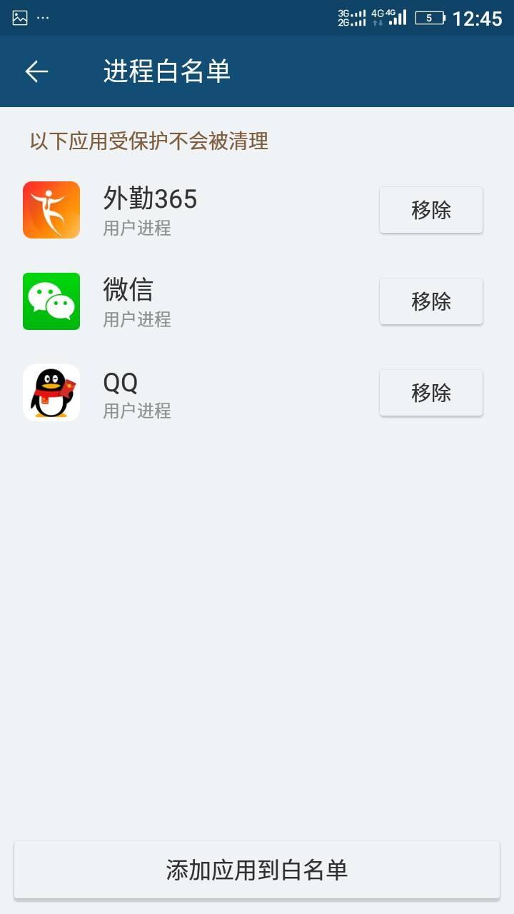 5.回到系统管家页面 点击垃圾清理,点击右上角的设置,点击进程白名单,最下面有添加应用白名单的按钮,把应用加入白名单