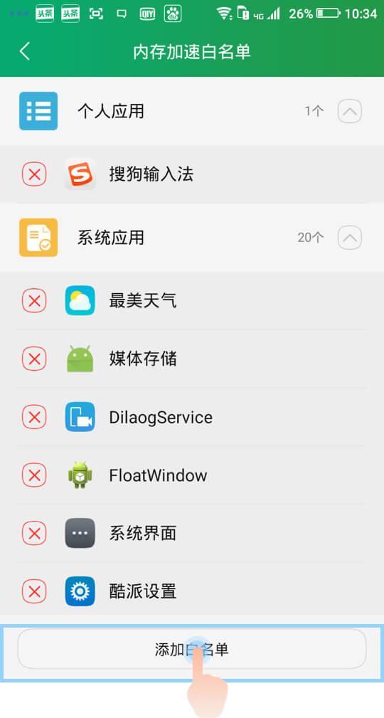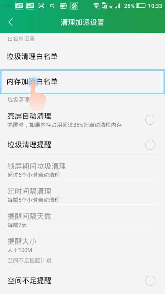 1.打开库管家页.点击清理加速——右上角的设置——内存加速白名单——最下面添加白名单——找到365软件点加号加入白名单