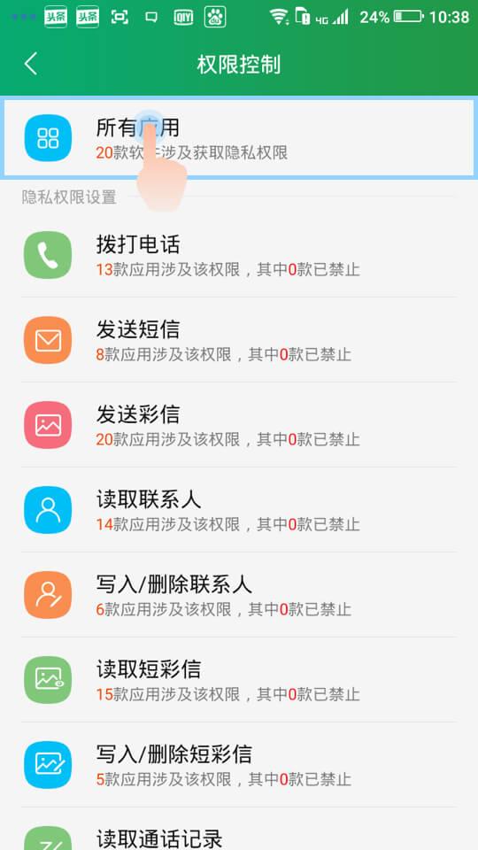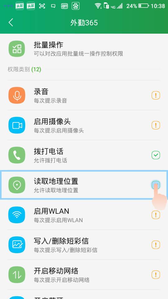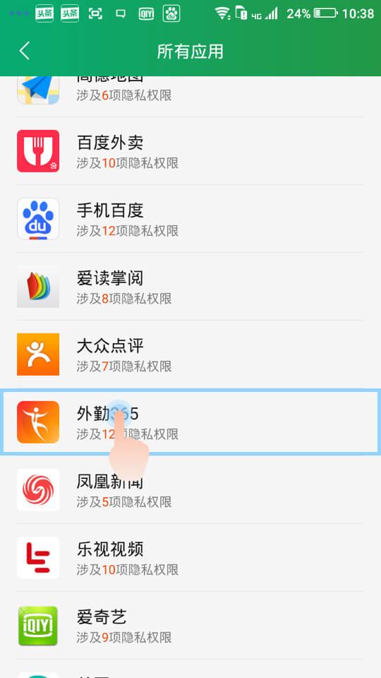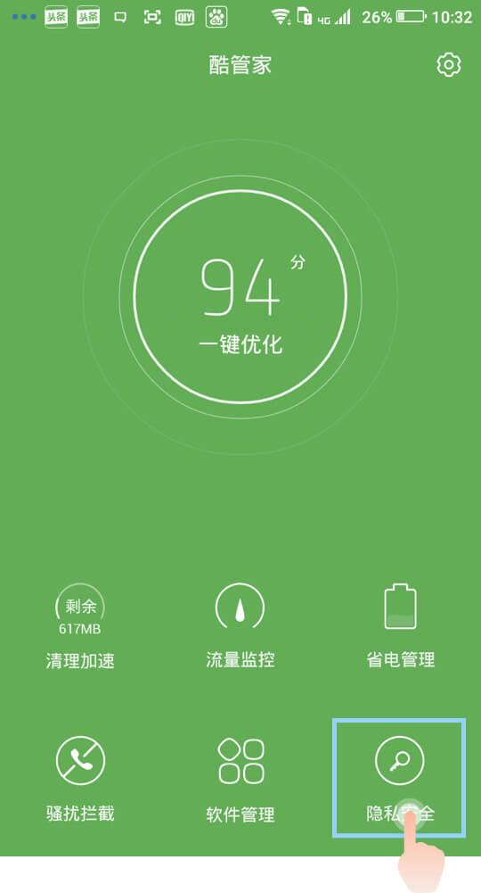 5.回到酷管家页面——打开隐私安全——权限控制——所有应用找到365软件——点击365允许读取地理位置