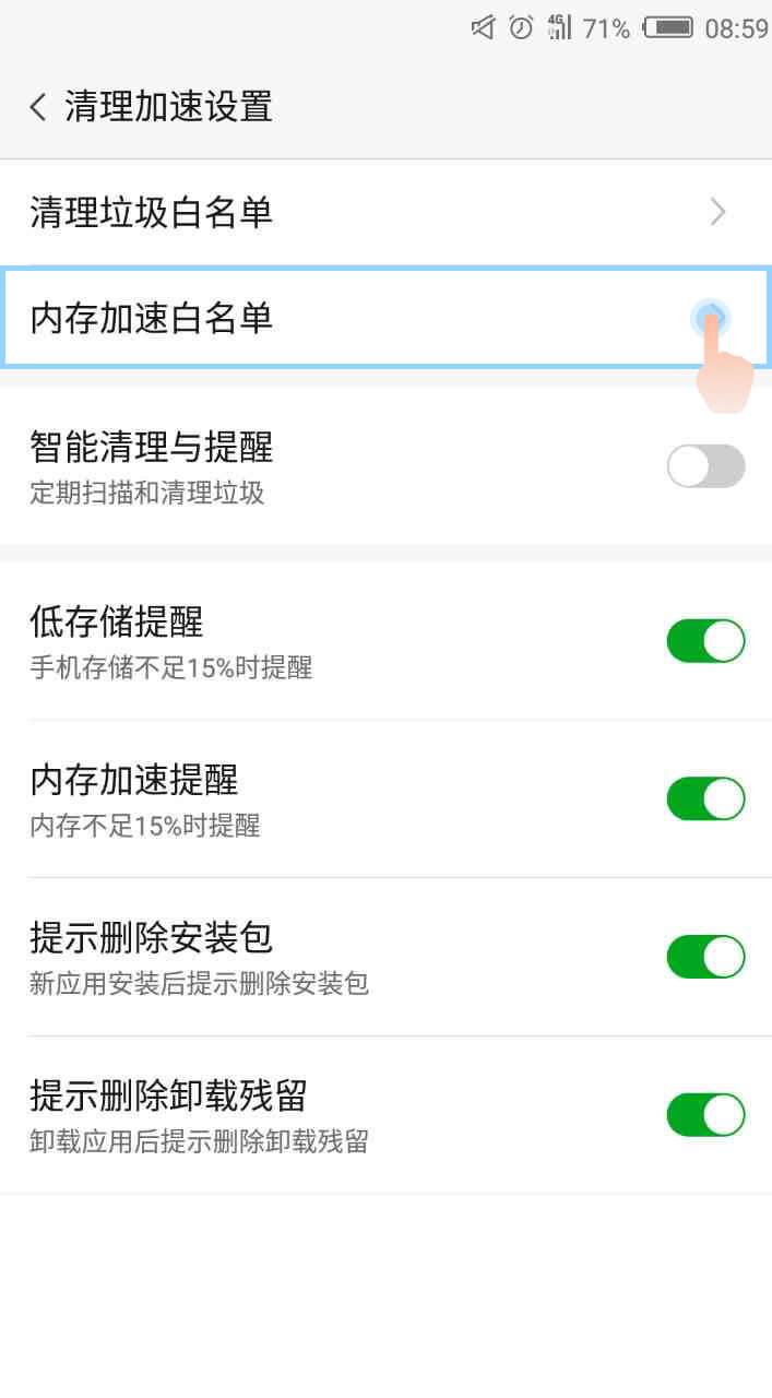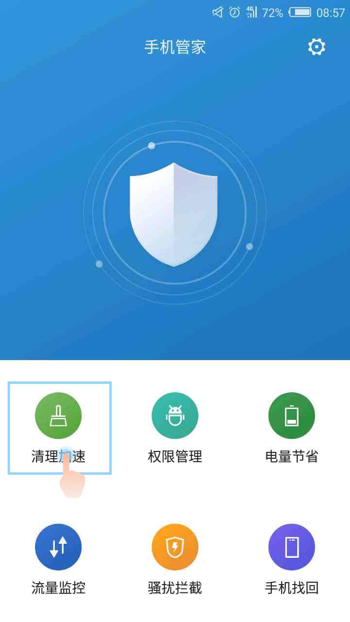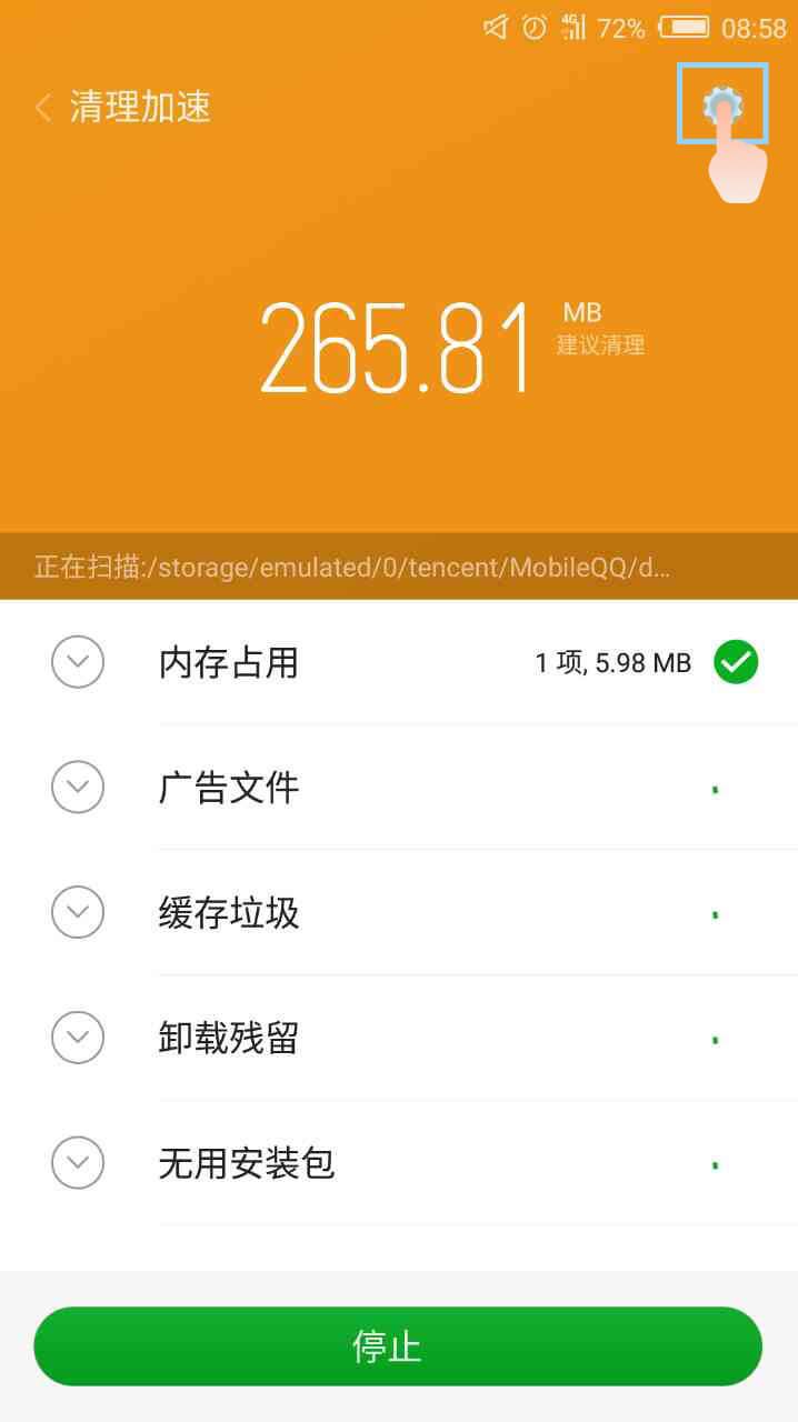 1、努比亚手机管家,点击清理加速进去之后,等待扫描结果,点击右上角齿轮图标,找到外勤365加入白名单;