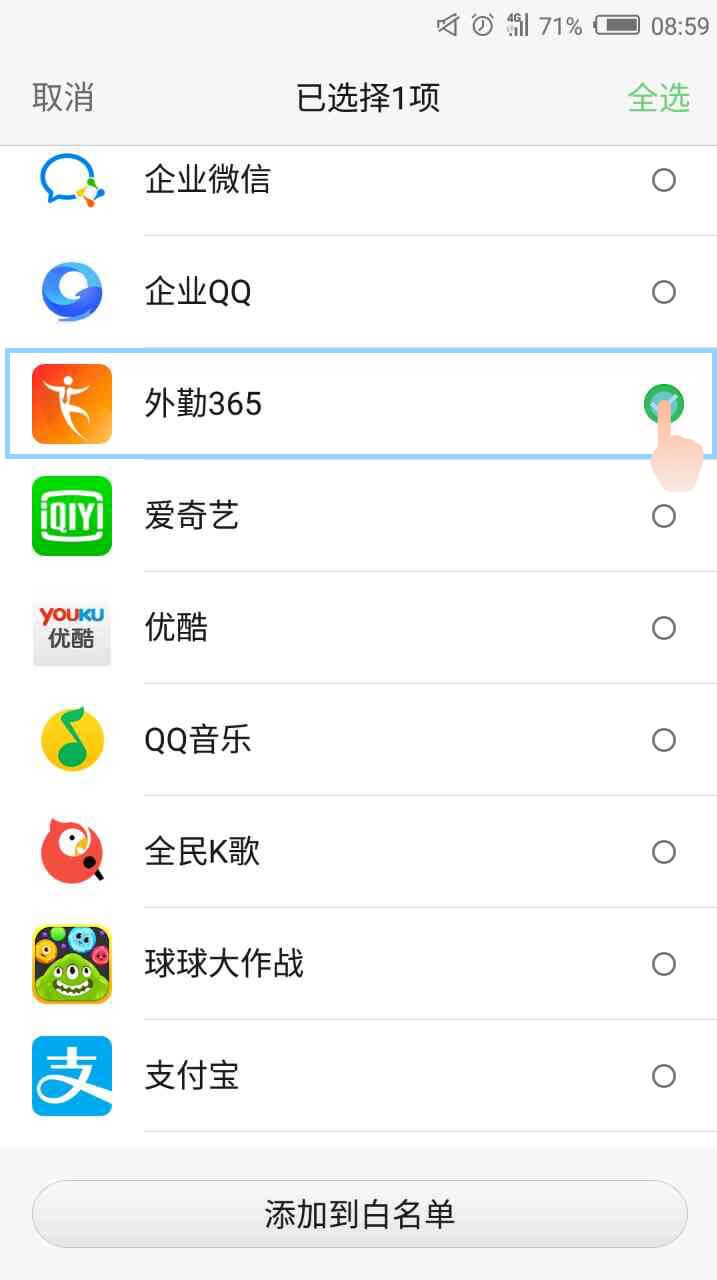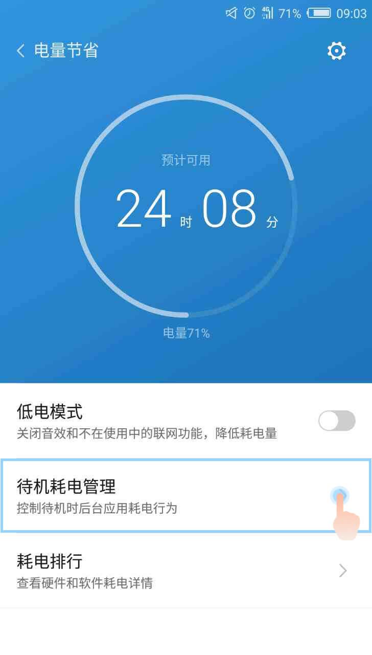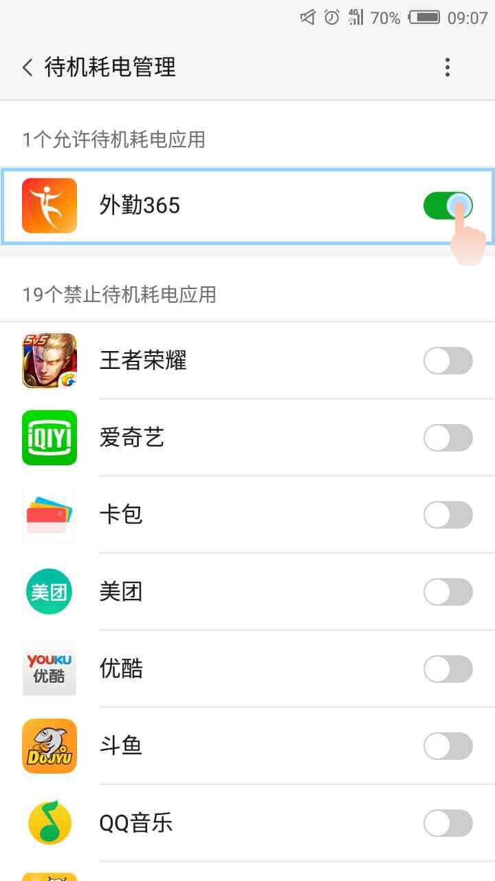 4.点击进入电量节省,点击待机耗电管理,将外勤365点开允许;