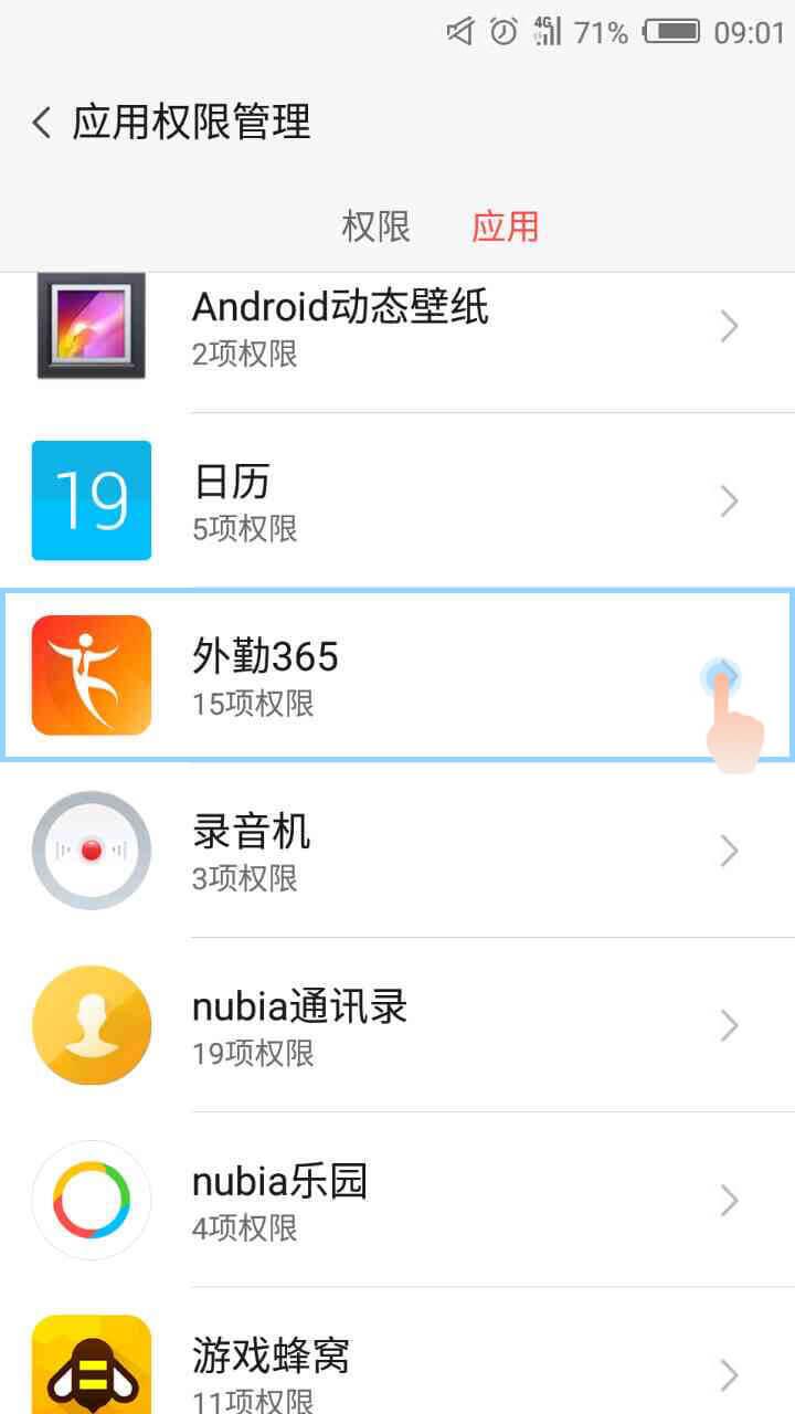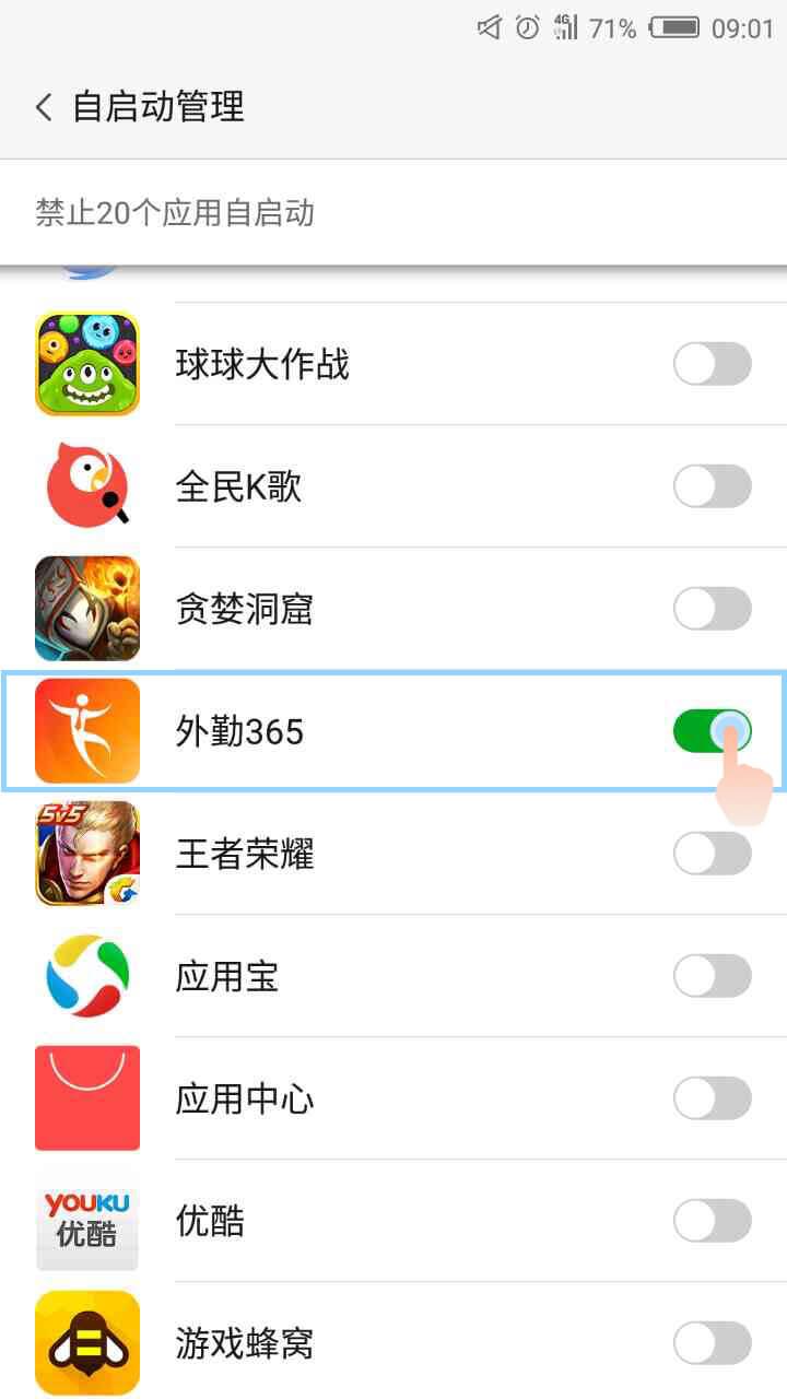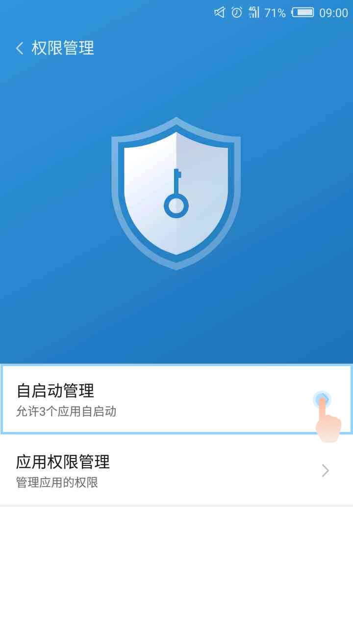 2.点击权限管理,进入自启动管理,将外勤365打开自启动;