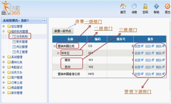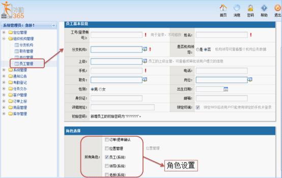 外勤365应用可以通过admin账号管理企业信息进行初始化数据,包括员工管理、组织架构设置、商品信息、客户信息、考勤信息等。