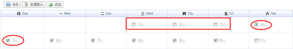 如果遇到节假日,需要调整考勤日期,只需要勾选考勤日期,取消勾选非考勤日期即可。例如,该月1、2、3号放假,4、5号正常上班,则按下图设置:
