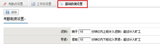 这里设置的时间,按照上下班时间来进行计算,如上班时间为8:30,则8:30~8:45打卡为迟到,8:45之后打卡为旷工;下班时间为17:30,则17:15~17:30打卡为早退,17:15之前打卡为旷工。
