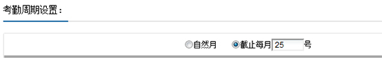 企业系统管理员可对考勤周期进行设置,默认为自然月,即从当月的1号到月底;也可设置为截止到每月的几号,如下图所示: