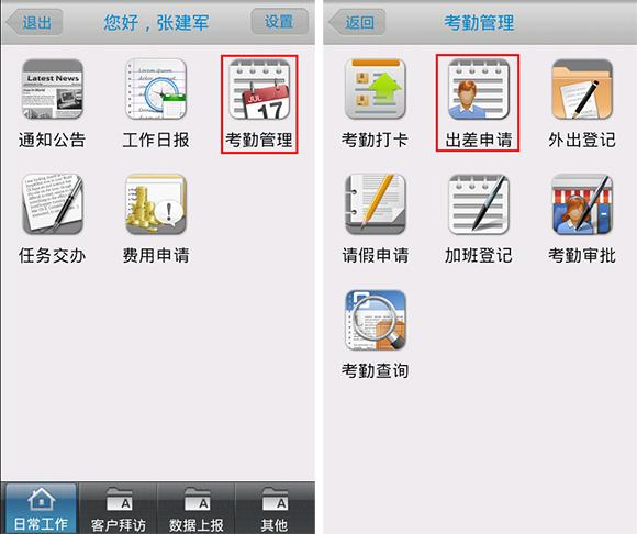 员工出差前,需要在手机客户端上提交出差申请,在【考勤管理】——>【出差申请】中点击【新增】,填写出差申请内容,保存提交;