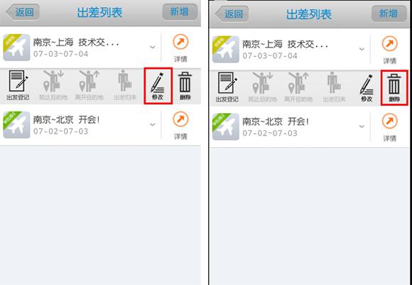 员工提交的出差申请,在未审批的时候,可由员工修改后重新提交;也可由员工删除
