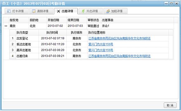 在弹出框中选择【出差详情】,可查看出差的详细记录。