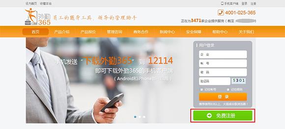 我们只需要填写公司的基础信息,就可以拥有外勤365账号。访问外勤365的官方网站www.waiqin365.com,我们可以在首页的醒目位置,看到“免费注册”按钮,点击后,进入企业注册页面;
