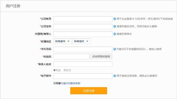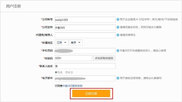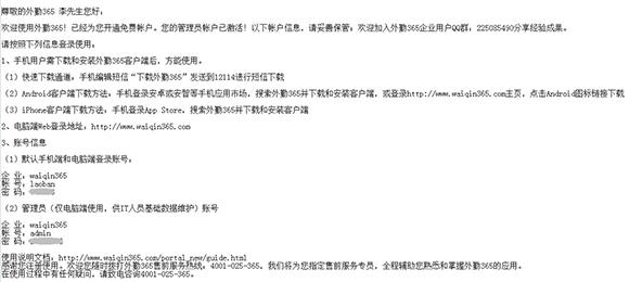 请及时查收我们的短信和邮件,并妥善保管。至此,官网注册外勤365就完成了,我们可使用短信和邮件中提供的账号登陆并使用。