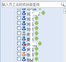 在弹出菜单中,你可以看到下图这样的菜单。其中蓝色的小人代表是定位状态正常的男性员工,橙色的小人代表定位状态正常的女性员工,灰色和中间有个感叹号的小人,代表定位状态不正常的员工。