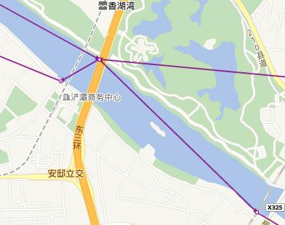 另外,图中实心的点代表GPS定位出的位置,比较精确,空心的点代表是取得运营商基站位置,精准度比较差,所以,这个点偏移到了河里的位置,导致整体线路会出现在河里。类似的还有下图这样的情况