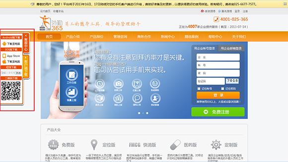 我们登陆外勤365的官网(http://www.waiqin365.com),找到左侧的