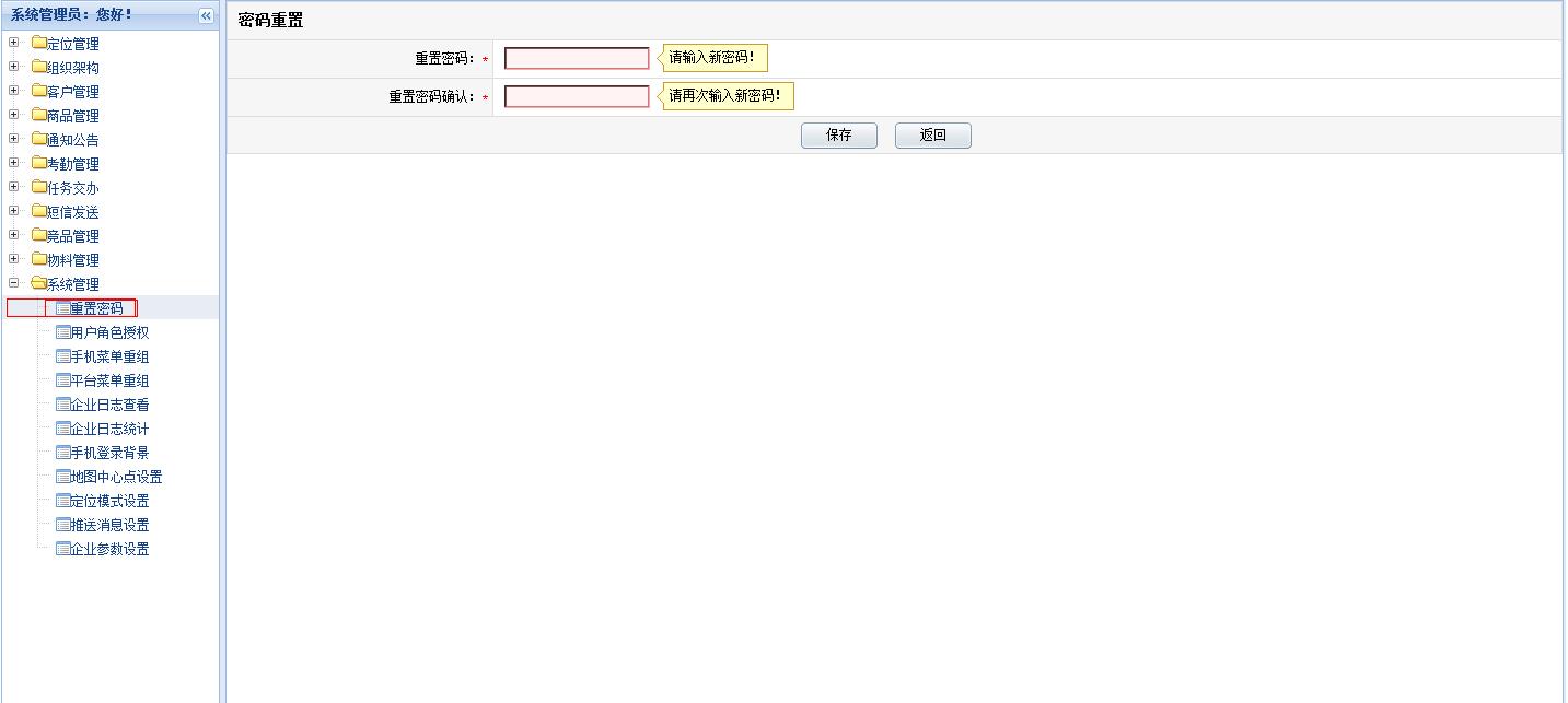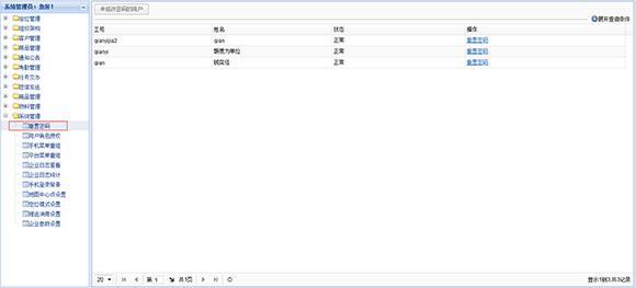 管理员登陆外勤365系统,选择【系统管理】——>【重置密码】,列表中会列出系统中所有用户的信息;