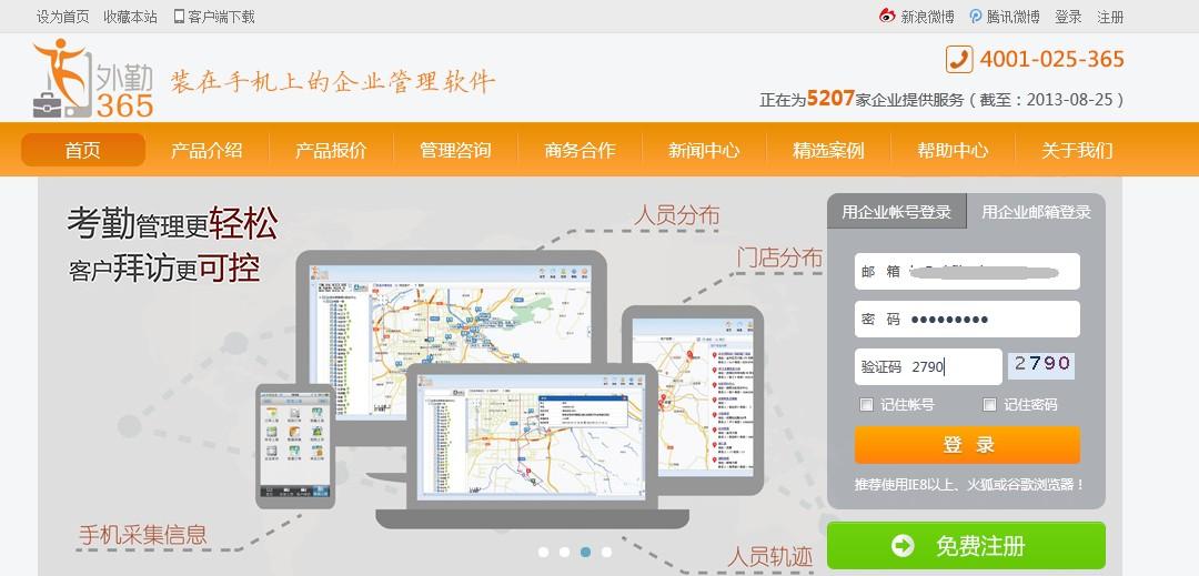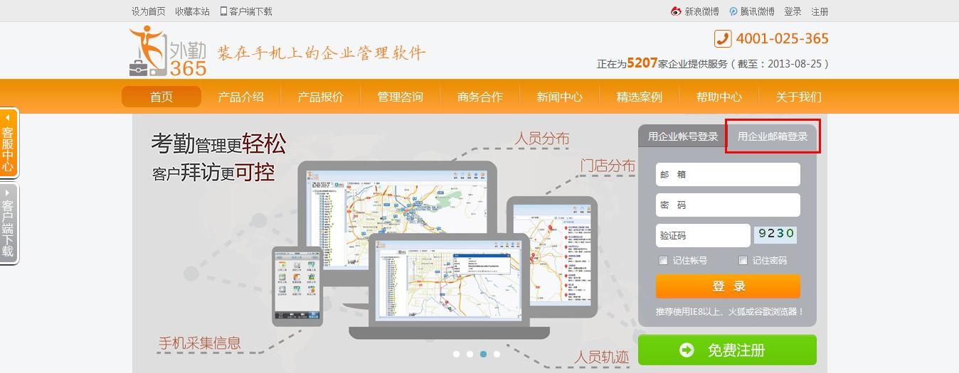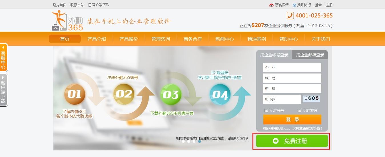 登录外勤365官方网站,点击“免费注册”;