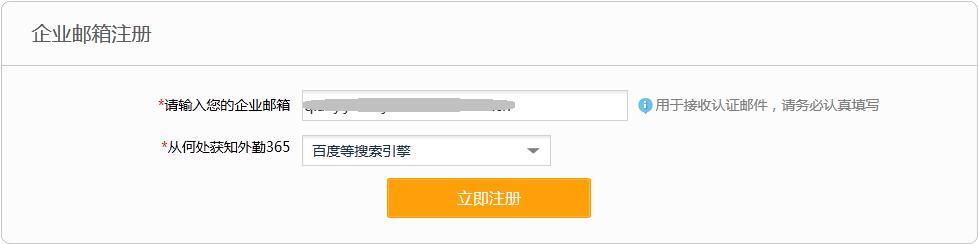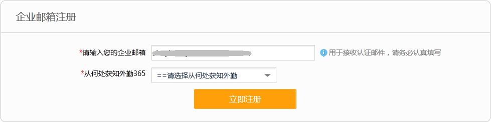 我们的员工也可以通过企业邮箱注册自己的外勤365账号,前提是该企业邮箱已经在外勤365系统中注册过;员工填写自己的邮箱,然后点击“立即注册”;