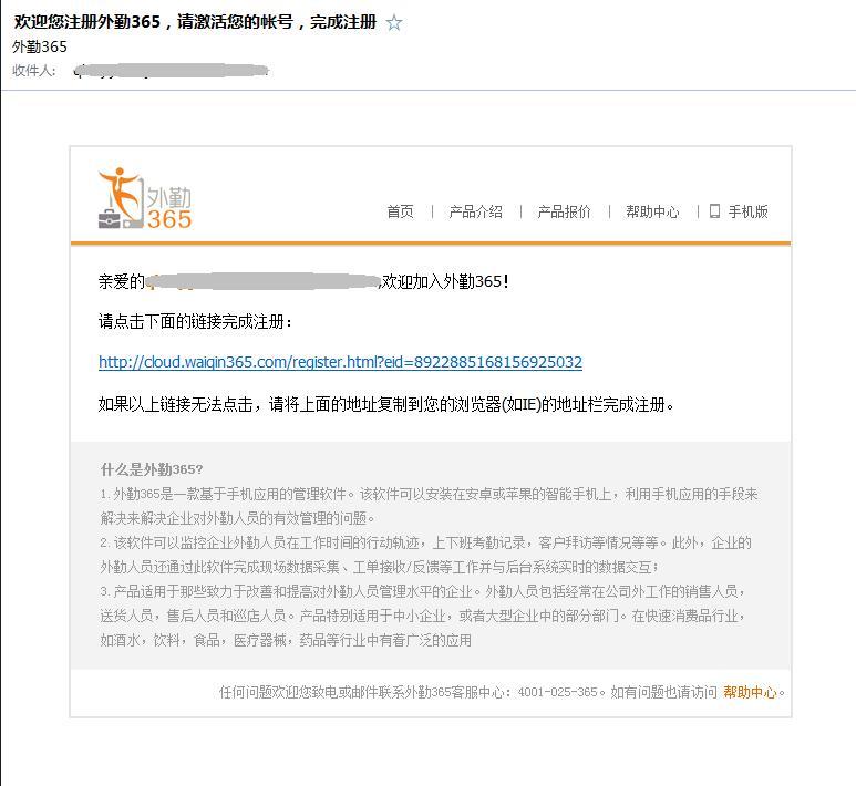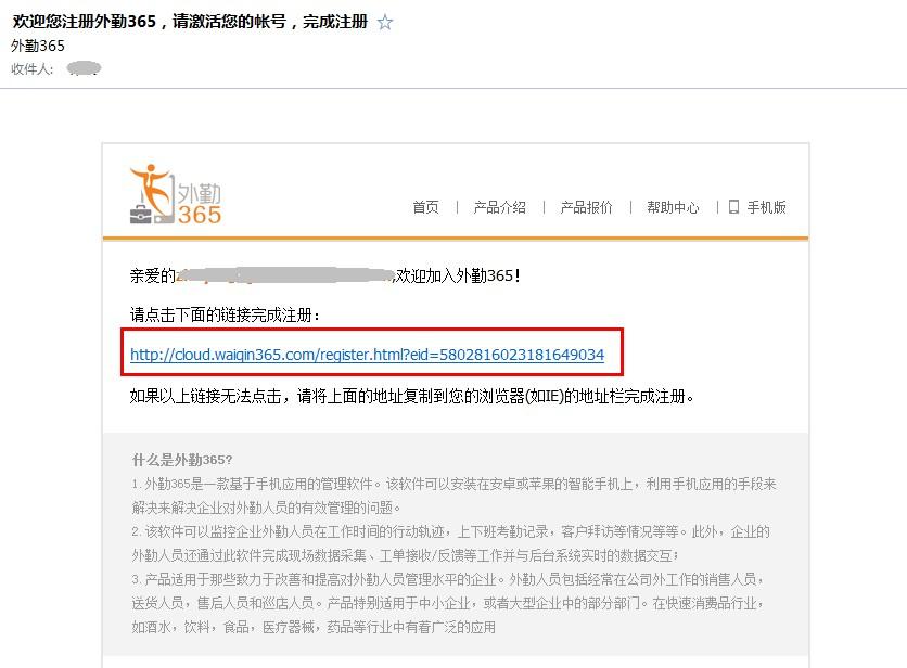 打开我们的邮箱,会受到外勤365系统发送的激活邮件;