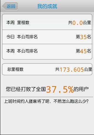 选择清单右上角的“成就”,可查看自己本周里程数、今日排名、本周排名和总里程数;系统可以为我们自动排名,按周进行更新。