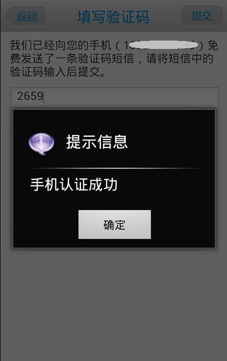 填写过验证码后,点击“提交”,完成外勤365账号的手机认证工作。